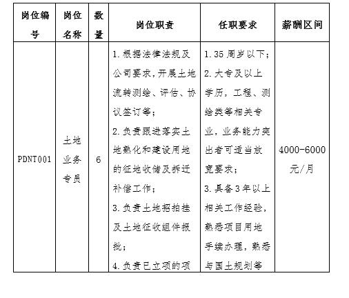 此次面向社会拟公开招聘劳务派遣制工作人员9名,其中土地业务专员岗6名、行政业务专员岗2名、会计岗1名。招聘岗位及具体要求如下: